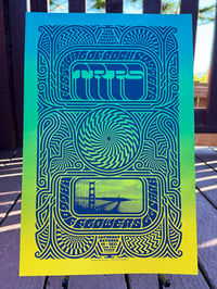 11"x17" Screen Prints for the 2025 TRPS Festival of Rock Posters, Hall of Flowers, Golden Gate Park, San Francisco, CA. Two versions: One with a Red>Yellow Split Fountain, and one with Blue>Yellow - Both with Navy ink for the art. Printed by Forthrite Printing in Oakland, CA. Signed+Numbered.